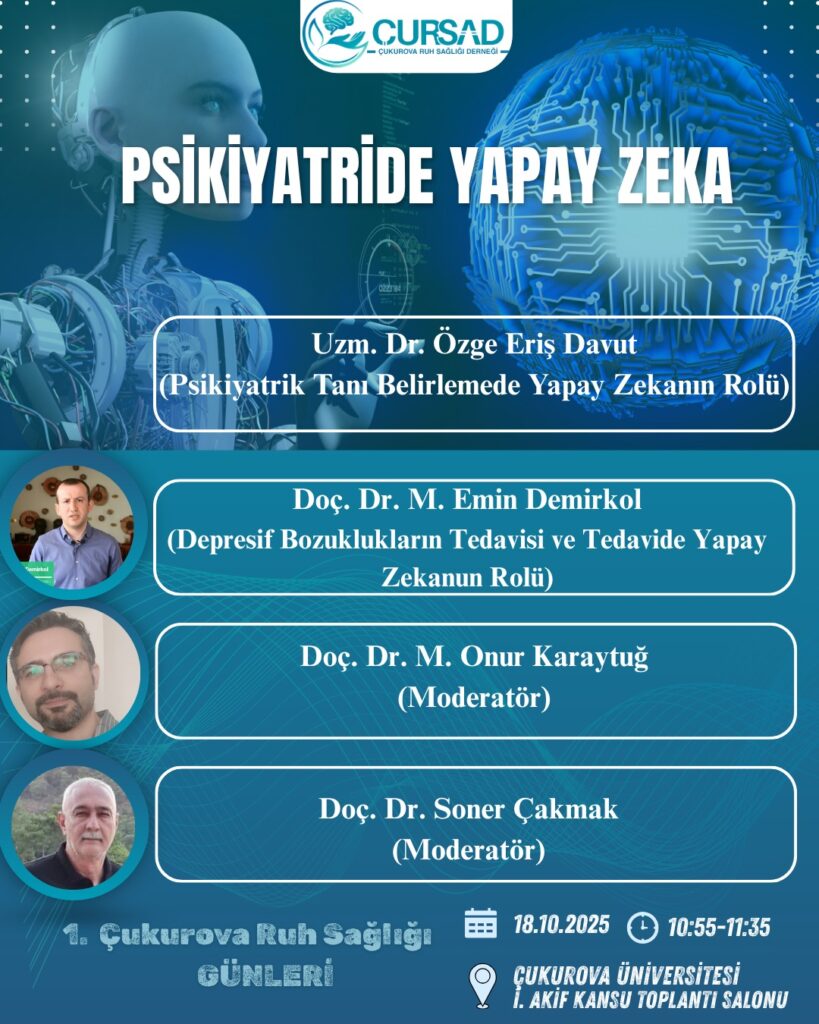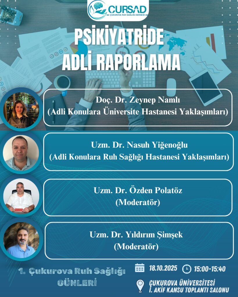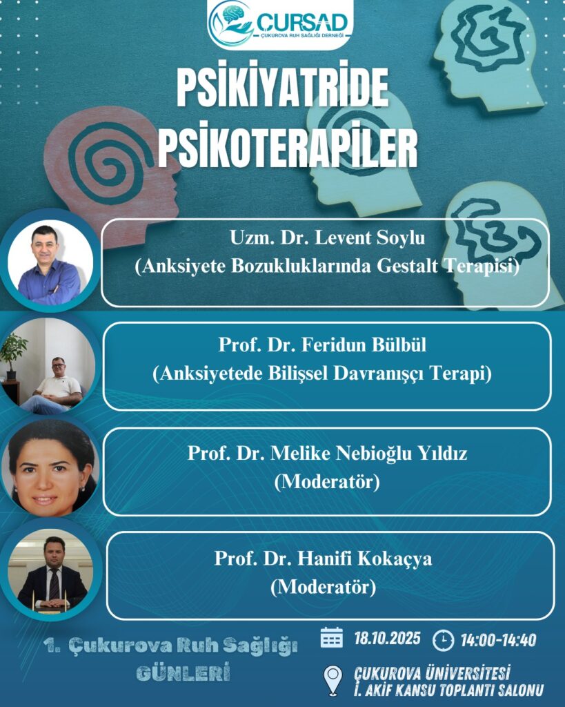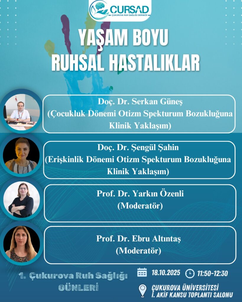 - Çukurova Ruh Sağlığı Derneği olarak düzenlediğimiz bu özel günde, erişkin ve çocuk psikiyatri hekimlerine yönelik zengin bir akademik programla bir araya geliyoruz.